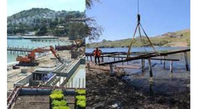 Bu kapsamda Deniz Kızı Beach Club ile Redline ve memedof isimli mekanların izinsiz ve kaçak olan iskele, ahşap sahne ve ahşap yapılarının yıkım işlemleri esnasında bazı işletmelerin sahili taşlarla dolgu yaparak doldurduğu da gözlendi.
