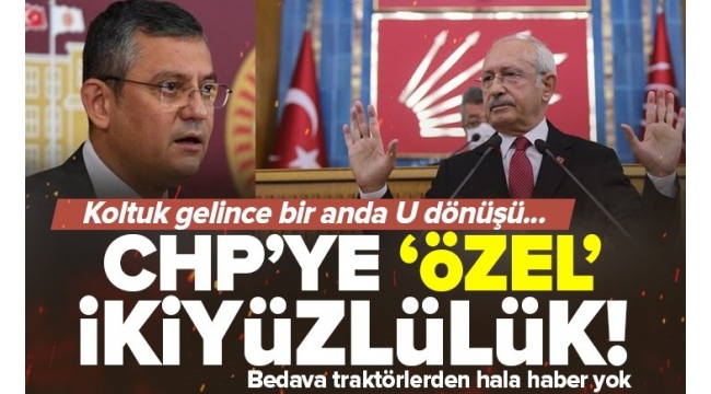 "BEDAVA TRAKTÖR" YALANI...Öte yandan koltuğu görünce dediğini yutan Özgür Özel daha önce de "CHP'den her çiftçiye bedava traktör" vaadi sonrası çamura yatmıştı. Özel, "İnanamayacaksınız ama CHP'den her çiftçiye bedava traktör..." sözünün çarpıcı olsun diye yazdıklarını söyleyip, seçmeni kandırdıklarını itiraf etmişti.